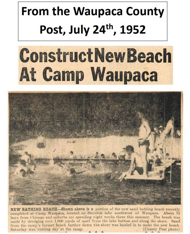 We continue to locate articles about camp that were published in the WCP. Every summer we stop by the Waupaca Historical Society, where all the WCP master books are housed, to look for these treasures of Camp Waupaca history. As recently as 2025, Mike Lurie found an article from 1952 about the construction of the new beach!! On this page, you will find a cross reference of all WPC articles that are individually found in their respective year pages. Enjoy this walk down memory lane!! We hope you find it as exciting as we did when we found them!