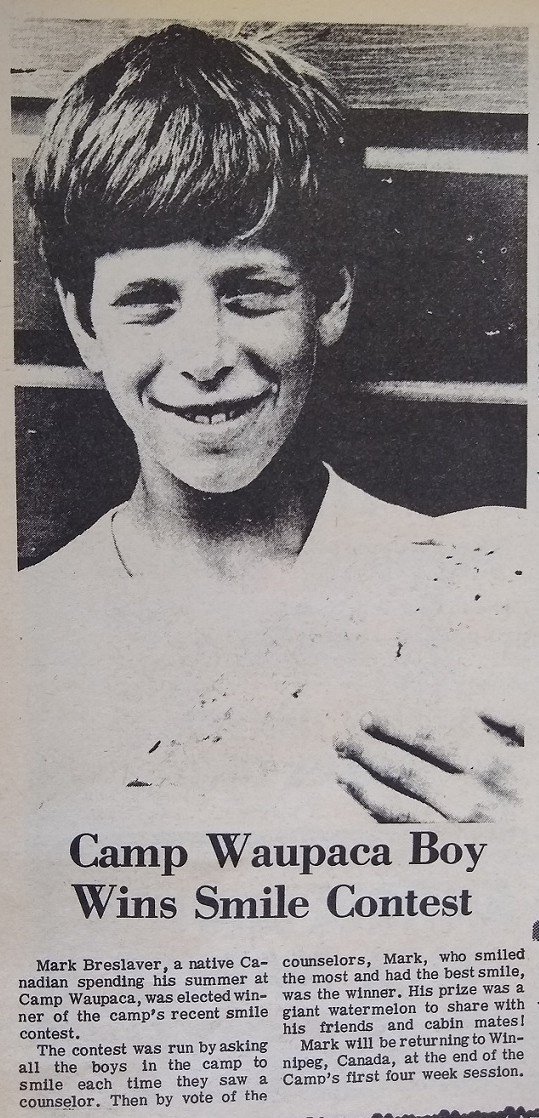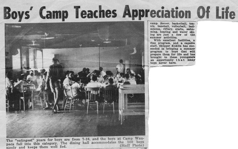I would bet that most of you who were at camp in the 1950s and 1960s remember seeing an article from the Waupaca County Post (WCP) pasted to a wall in the rec hall. By the 1970s and 1980s, it was fading quite a bit but still readable. There is video from the 1996 reunion where Rob Gerowitz goes into the rec hall on film to show the remnants of that article.
