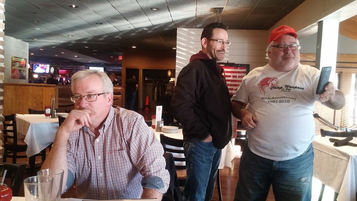 WAUPACA, WI - Seven Camp Waupaca alumni gathered in Waupaca this weekend to revel and reminisce in the town of their youth. Notably missing from the gathering was Paul Warshauer. A last minute pull-out, Paul contacted members as early as Thursday afternoon that he would not be attending, but told others as late as Friday morning that he was in Minnesota and would join the group Saturday. When contacted at his residence in Grand Island, NE, Warshauer said he was "attending to contracts and other important business".