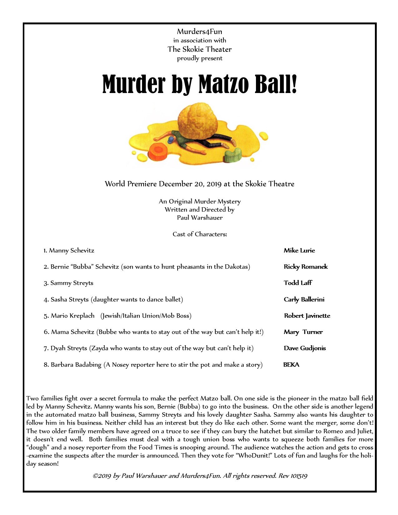 The planets have aligned, and both Paul Warshauer and Mike Lurie will be in Chicago this coming December! Plans are coming together for a reunion in the Chicago area. Paul is putting on one of his renowned Murder Mysteries and who knows? Maybe a Tyrone Guppy alum or two will be in his epic production at the Skokie Theater on Friday evening December 20 (contact Paul for details). Larry Gordon has put together breakfast plans for Saturday morning December 21 at Max & Benny's in Deerfield on Waukegan Road. Anyone else want to host a reunion activity that weekend?? Let us know!