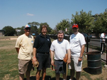 08/07/2005 - Choose-up Softball, in Chicago! A very close choose-up softball game was held on Sunday August 7. In attendance were: Don Feinstein, Dick Garb, Don Kaplan, David Kerstein, Dave Korman, Jeff Korman, Larry Lifson, Mike Lurie, Larry Rosen, and Glen Spear. Captains were Michael Lifson and Adam Lurie. There were plenty of triples that were legged into singles! And many creaking bones were heard rounding the bases! Spectacular catches were made, and even a grand slam or two dribbled out of the infield as well. Lots of reminiscing took place, and excitement over the upcoming visit to camp!